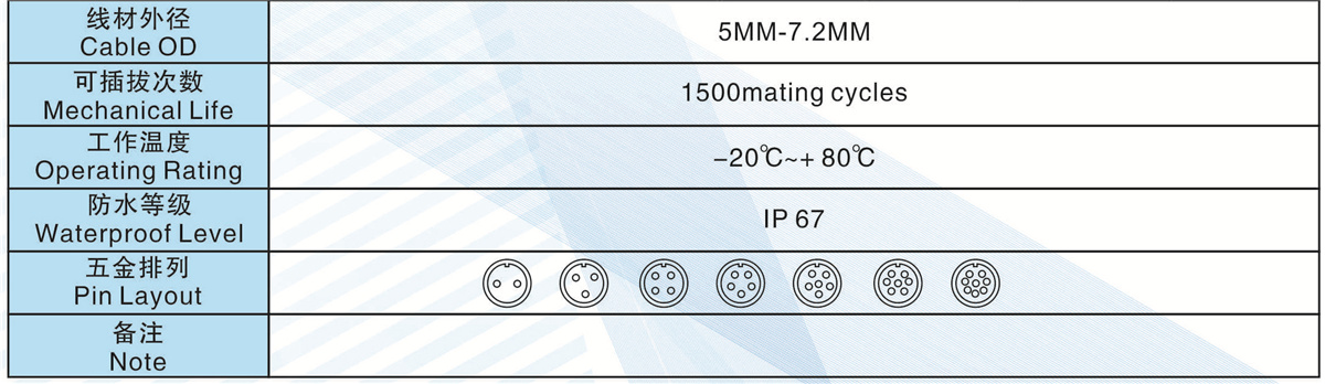 線材匹配(Wire Gague):<=1.0MM2 <=0.75MM2 <=0.5MM2 <=0.3MM2 <=0.3MM2 <=0.2MM2 <=0.2MM2